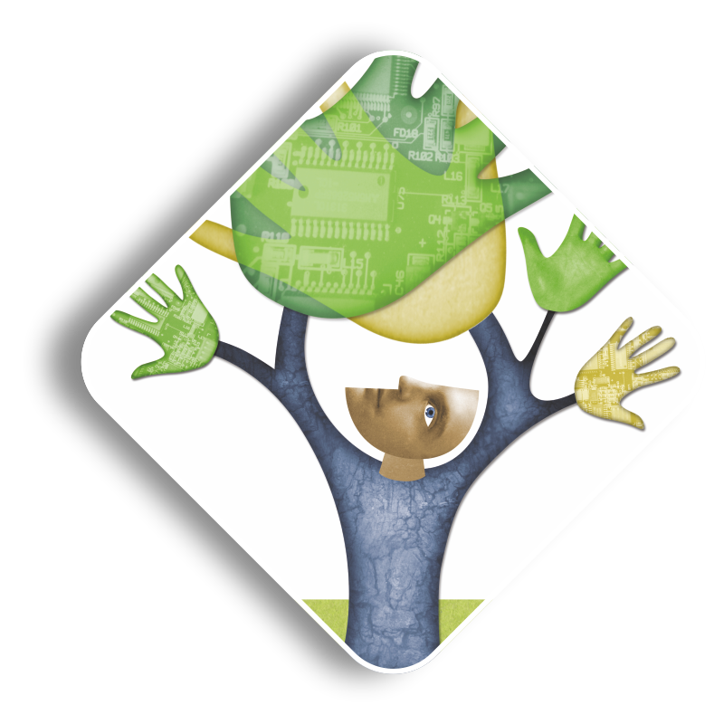 De cirkel staat hier voor de mens en het vierkant voor de organisatie.